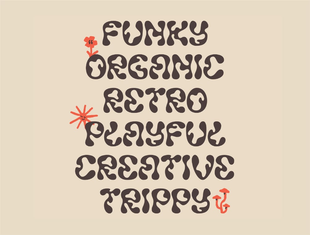 A retro-psychedelic, art nouveau inspired display font with a funky, bold, and organic character. Includes the basic uppercase characters, numbers, and basic punctuation in regular, bold, and ExtraBold. Recommended uses include poster text, book titles, logotypes, billboards, album art, and other creative expressions. May receive free updates, possibly including more characters/styles.