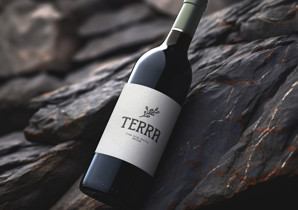 Free photoshop mockup for a wine bottle in a dark, rocky scene. Use this mockup in any personal or commercial project to enhance your design presentations and add a natural touch. Please consider a small contribution or review to help me produce more mockups and resources for free.